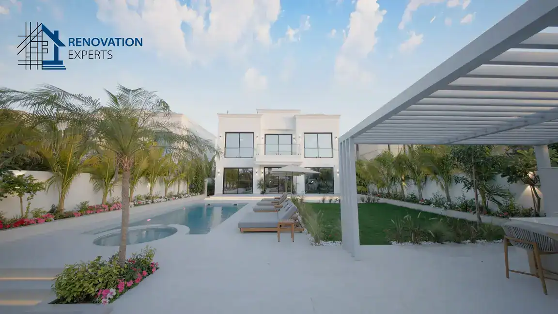 Renovation Experts proudly presents the stunning transformation of a luxury villa in Jumeirah Park, Dubai’s prestigious residential oasis. This comprehensive overhaul transformed the villa from top to bottom, blending urban sophistication with modern elegance. Elegant bathroom and bedroom renovations, a sleek kitchen, and stunning landscaping create a seamless indoor-outdoor living experience. The villa now boasts a luxurious swimming pool, BBQ area, sauna, and state-of-the-art gym room, perfect for relaxation and entertainment in the heart of Jumeirah Park’s lush greenery. Renovation Experts’ dedicated team worked tirelessly to turn our client’s dream into a reality, showcasing their expertise in delivering exceptional luxury renovations that embody Dubai’s urban spirit. The result is a contemporary masterpiece of modern living, where cutting-edge design meets unparalleled comfort. Villa Renovation at Jumeirah Park Dubai